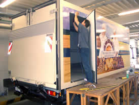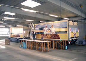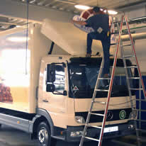 Herstellungsschritte LKW-Bedruckung und LKW-Beschriftung